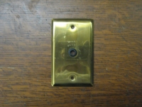 Accession: 2017.003.003 Object: Artifact : light mounts Title: Railroad Caboose Lamp Faceplate Description: Adam Westlake caboose lamp lantern railroad wall mount faceplate, brass. Rectangular in shape with centre hole with rubber seal for electric wire from lamp fixture & 2 smaller holes at top and bottom for screws to attach faceplate to wall. Item Date: unknown Size: 8 x 12.5 x .5 cm Creator: The Safety Co., New York? Indexed In: Railroad » Equipment » Backing Plate